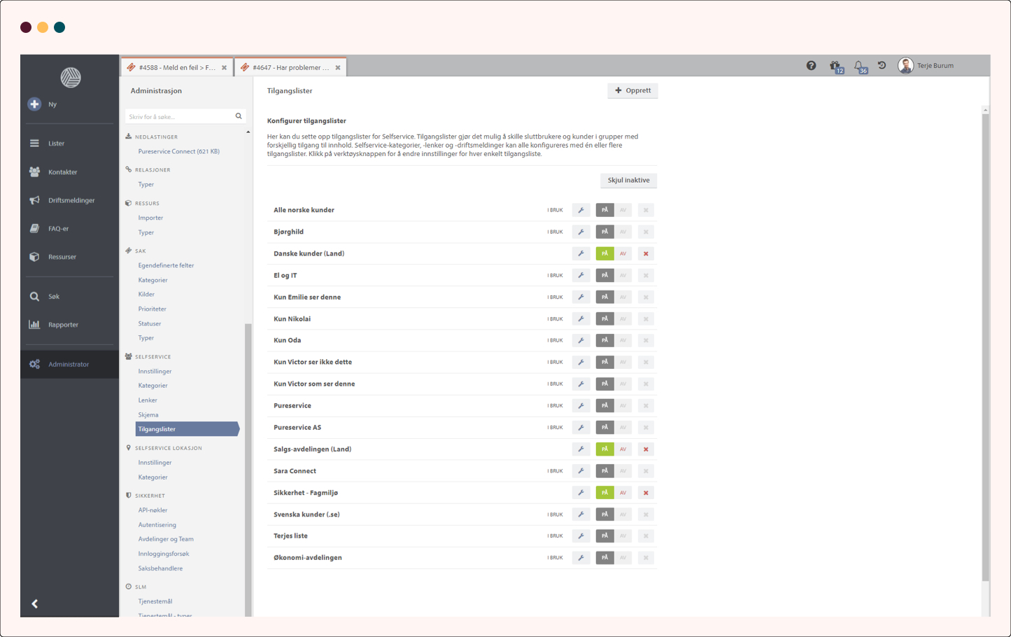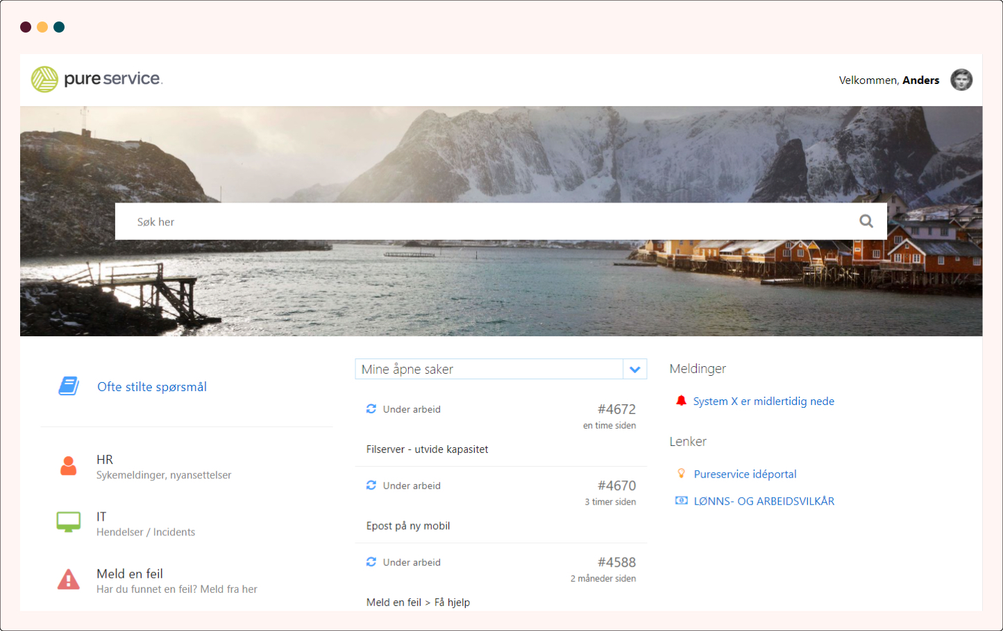 Pureservice samlar alla förfrågningar på ett ställe, vilket ger dig en fullständig överblick och säkerställer att alla medarbetare och kunder följs upp. Självbetjäningsportalen fungerar som en kanal där kunder och medarbetare kan rapportera in ett ärende eller använda den som en källa till information och kunskap. Ärendet vidarebefordras automatiskt till rätt ärendehanterare baserat på den information som rapportören har lämnat, vilket gör att du kan förbättra svarstiden och leveranskvaliteten.