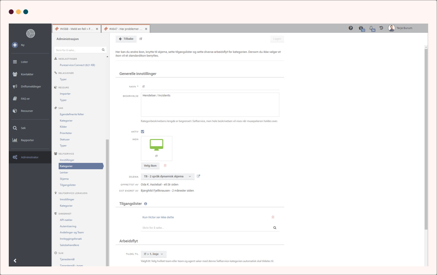 En responsiv och åtkomstkontrollerad portal för registrering av alla typer av incidenter, förfrågningar, önskemål och beställningar med relevanta dynamiska formulär med anpassat arbetsflöde och process.
